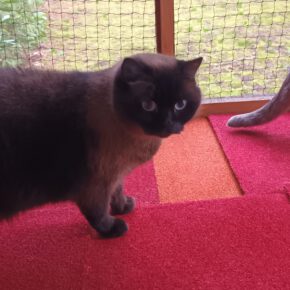 Betty brauchte nur wenige Tage, um uns zu vertrauen. Wenn sie sich eingelebt hat, ist sie eine ruhige, aufgeschlossene und unkomplizierte Katzendame, die gerne die Nähe des Menschen sucht und Aufmerksamkeit zu genießen weiß. Mit Leckerchen und Baldrianspielzeug hat man ihr Herz schnell erobert, auch Kämmen lässt sie sich bei uns ohne Probleme.