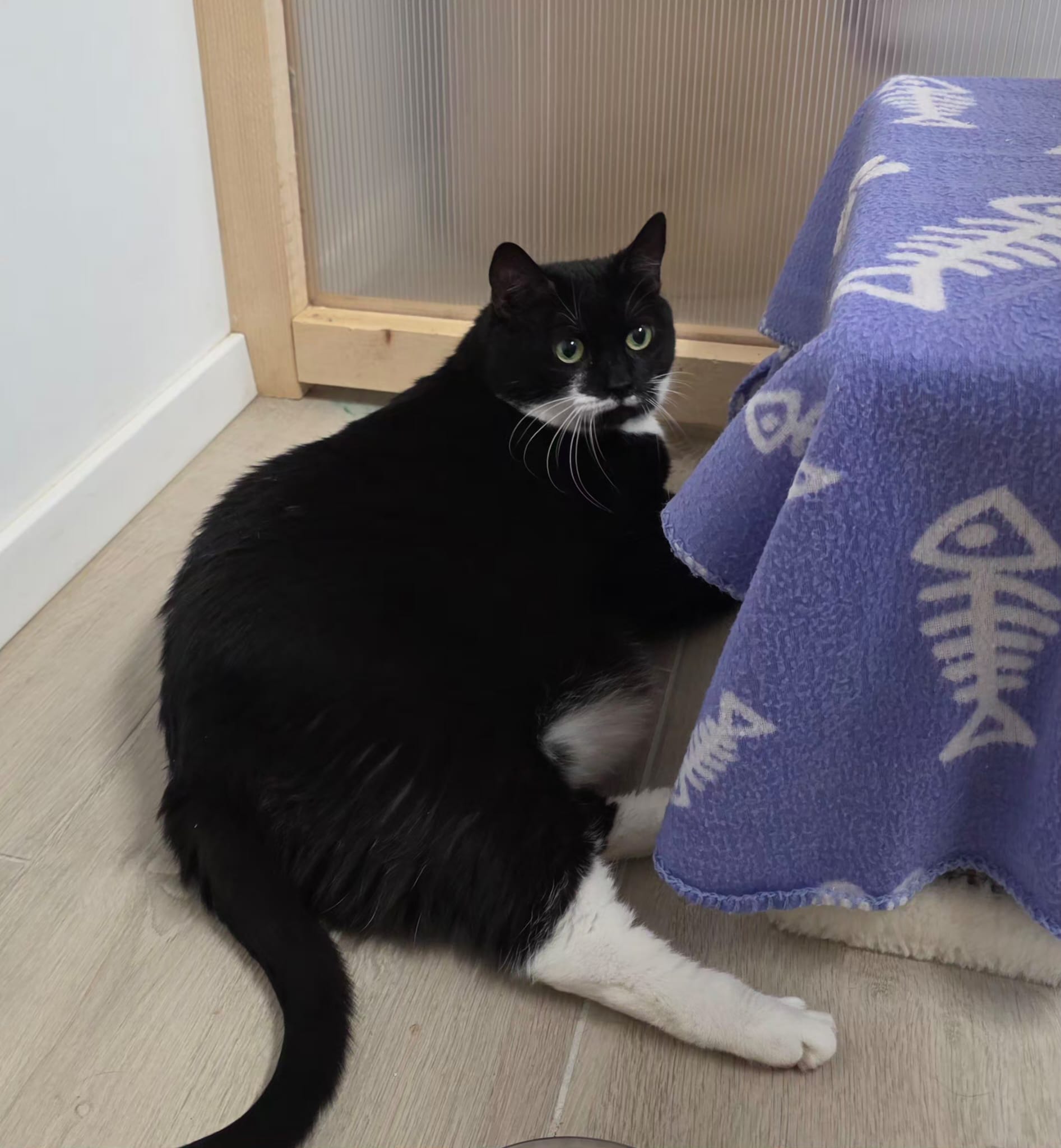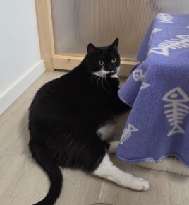 Berta, EKH, schwarz/weiß, geboren geschätzt im Mai 2020. Sie ist kastriert, 2-fach geimpft, gechipt sowie FIV und FeLV negativ getestet. Berta ist ein schönes Beispiel dafür, wie sich Katzen mit Zeit und Geduld positiv entwickeln können.