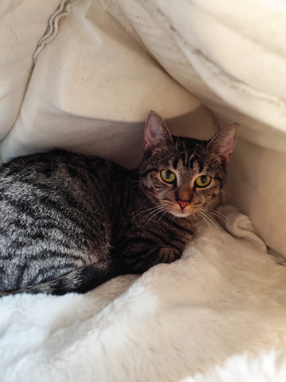 Nomi ist im Dezember 2024 geboren und ist wie Tim nach einer Eingewöhnungszeit eine unkomplizierte Schmusebacke, die immer dabei sein möchte und einfach nur lieb ist.