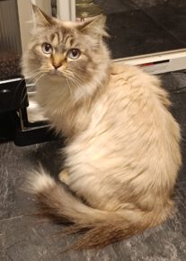 Betty brauchte nur wenige Tage, um uns zu vertrauen. Wenn sie sich eingelebt hat, ist sie eine ruhige, aufgeschlossene und unkomplizierte Katzendame, die gerne die Nähe des Menschen sucht und Aufmerksamkeit zu genießen weiß. Mit Leckerchen und Baldrianspielzeug hat man ihr Herz schnell erobert, auch Kämmen lässt sie sich bei uns ohne Probleme.