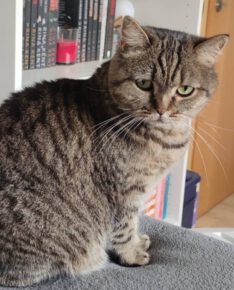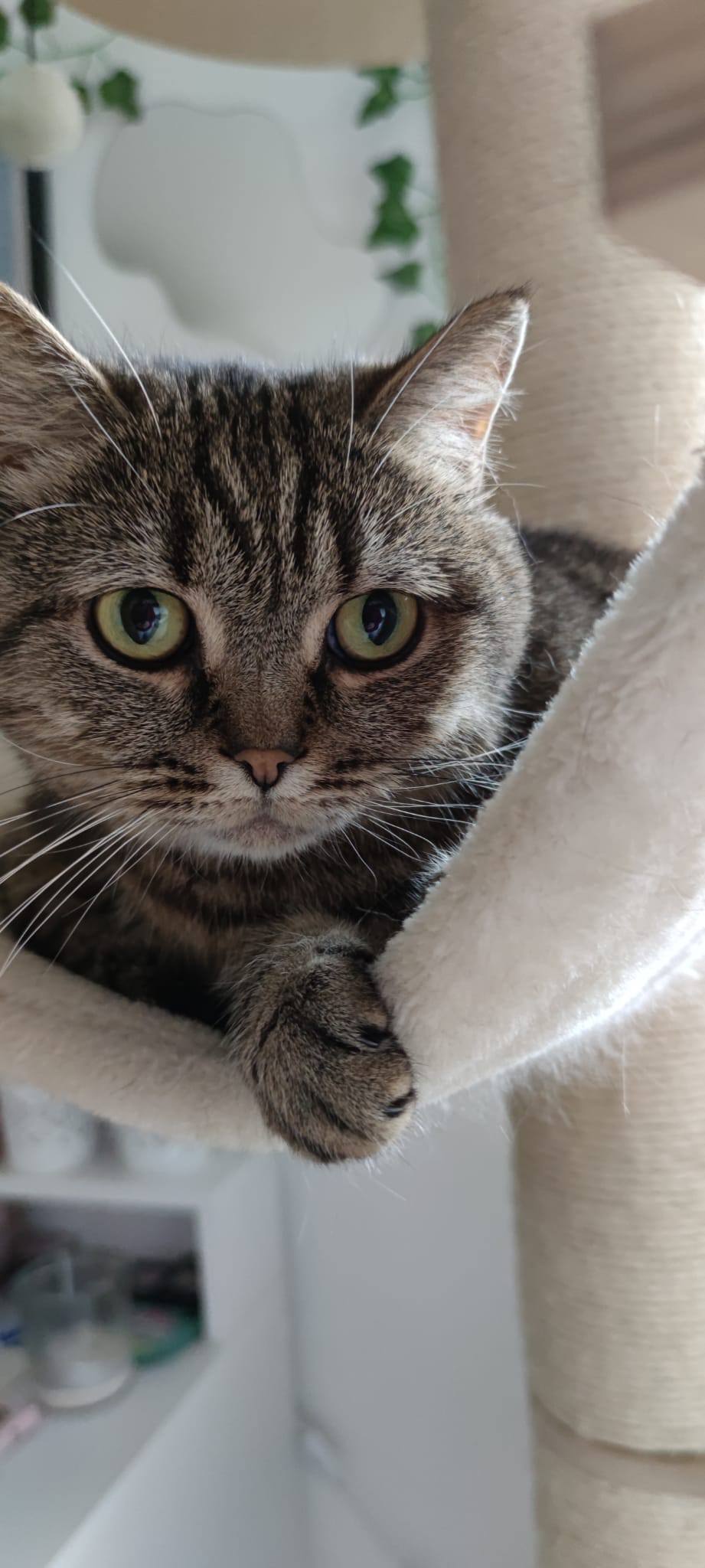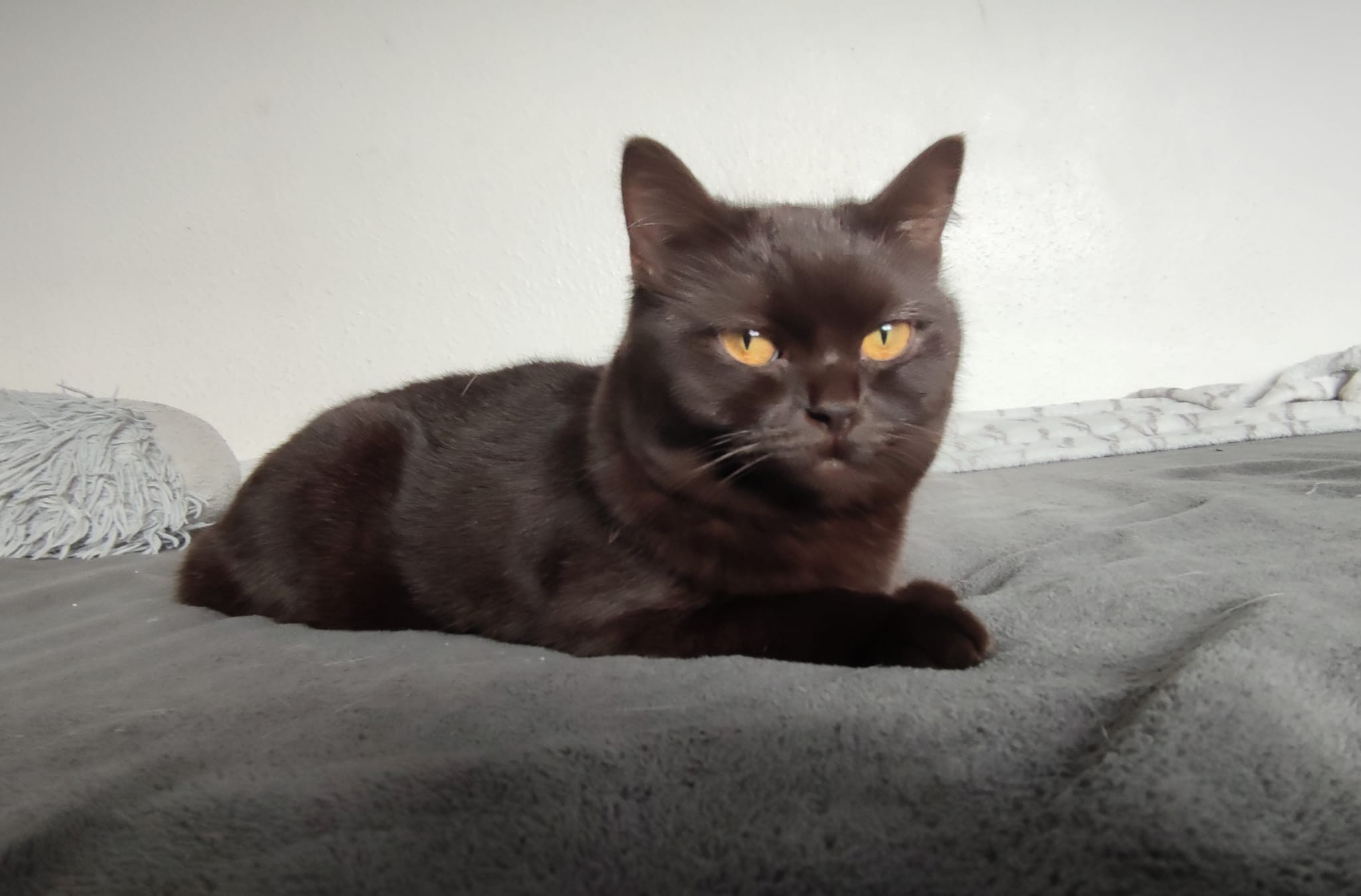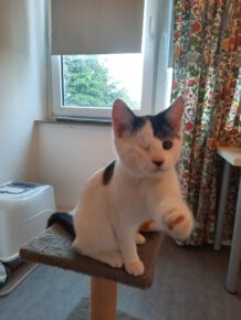 Zur Verträglichkeit mit anderen Katzen können wir aktuell noch nichts sagen, wir können uns aber gut vorstellen, dass Diego sich mit sozialen Katzen oder Katern gut verträgt.